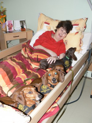 Naše jezevčice jsou tak trochu raritou v tomto oboru..:-) Navštěvujeme domovy důchodců a také mateřské školky.